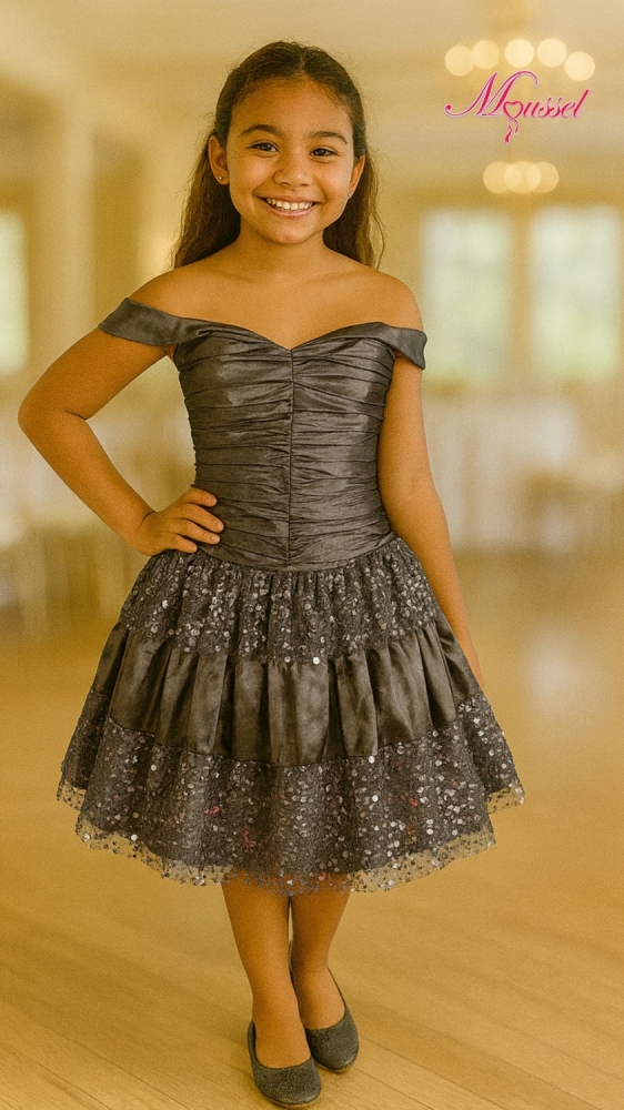 Hermoso diseño confecccionado en tafeta y tul, un estilo con vuelos en encaje que captura la vista por su color.
