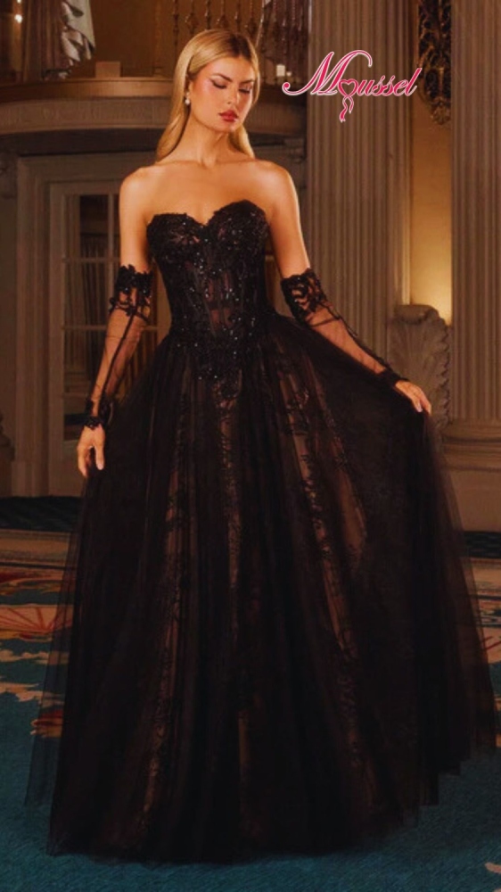 Vestido Noir Encanté : este diseño es alta moda, misterio y lujo dramático. ????✨ Corsé protagonista, transparencias sutiles y falda amplia de tul… esto es impacto absoluto en eventos de noche.