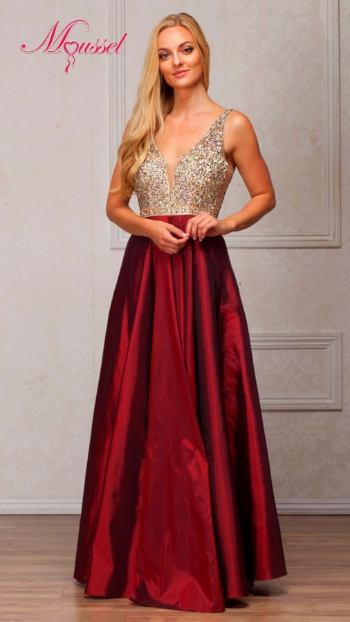 Estilo imperial en cada costura:  vestido de gala con su talla plata y dorado y una falda de un solo tono para darle elegancia a este diseño.
