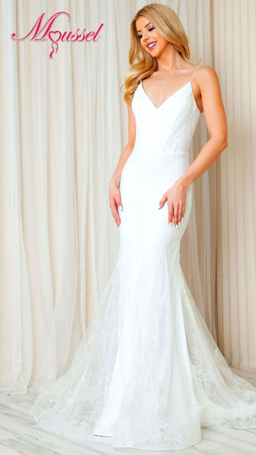 Escote V con tul bordado y falda asirenada. Majestuoso y femenino.