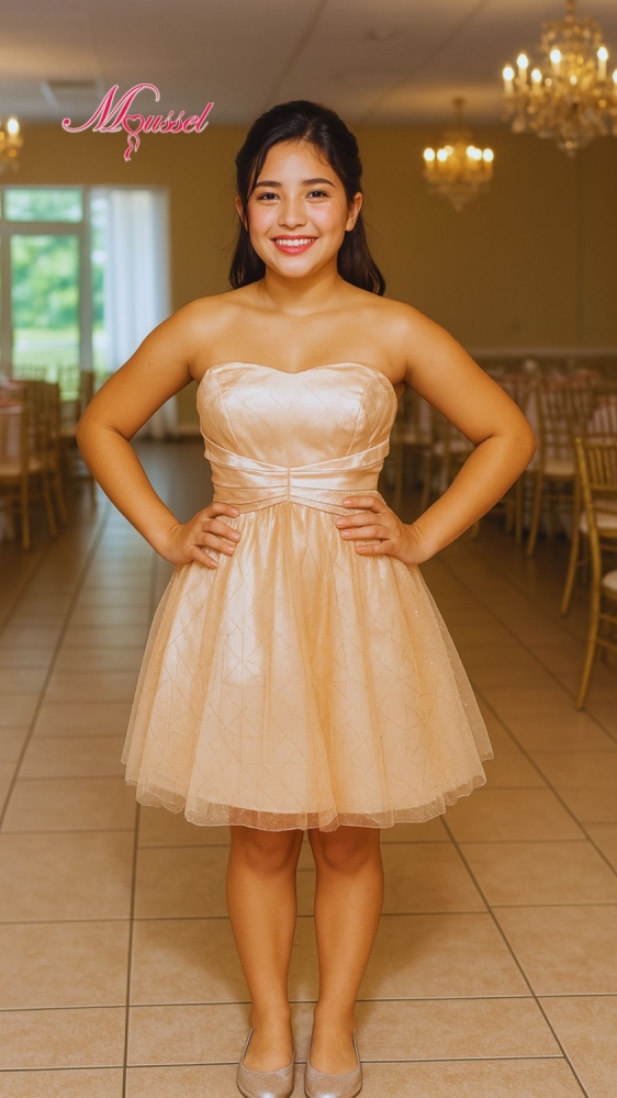 Melón: un color tierno y dulce para una vestido de adolescente. Sus capas de tul tienen un brillo para hacerte notar.