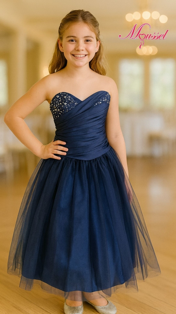 Como las piedras preciosas este diseño en azul oscuro, confeccionado en tafeta y tul es un diseño que captura las miradas.
