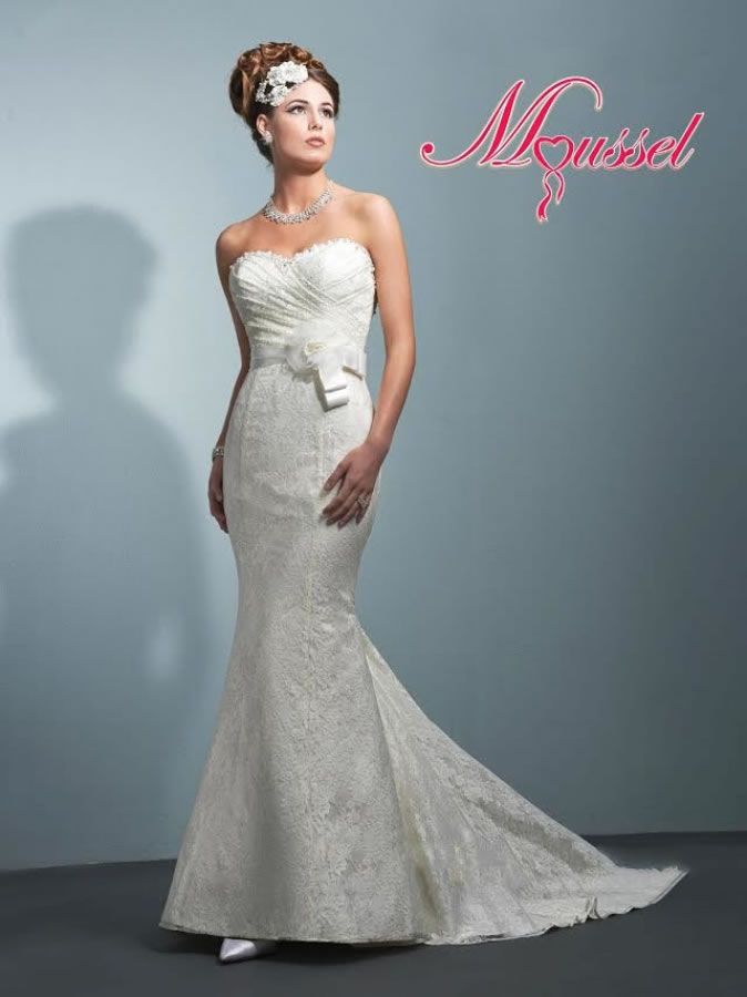 Strapless corte sirena confeccionado en encaje. Presencia sin exageración.