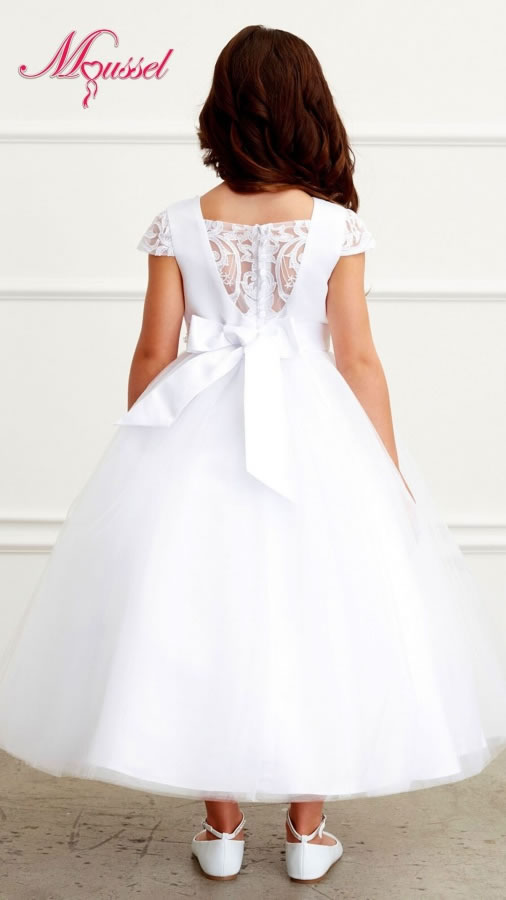Diseño clásico con manga corta confeccionados en encaje, talle alto que resalta con su cinturón bordado,  y una espalda con transparencia que da un aire de elegancia.